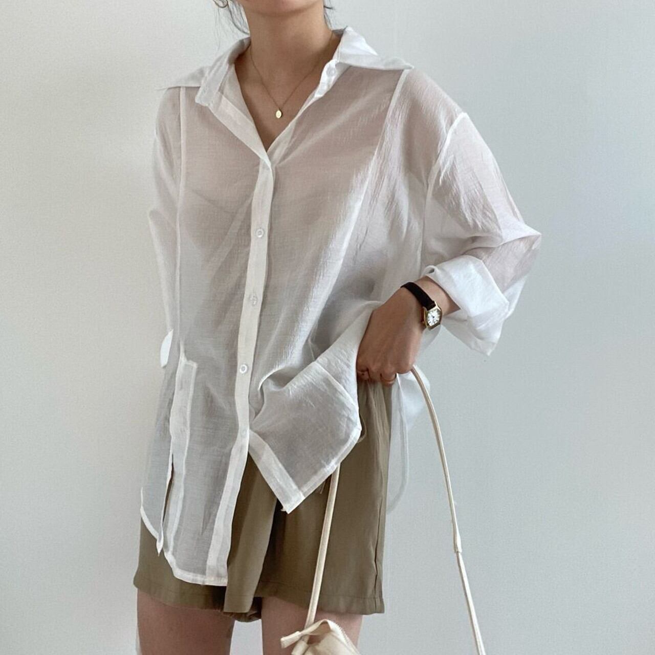 Waist ribbon sheer wrap shirt ◇2colors 1805