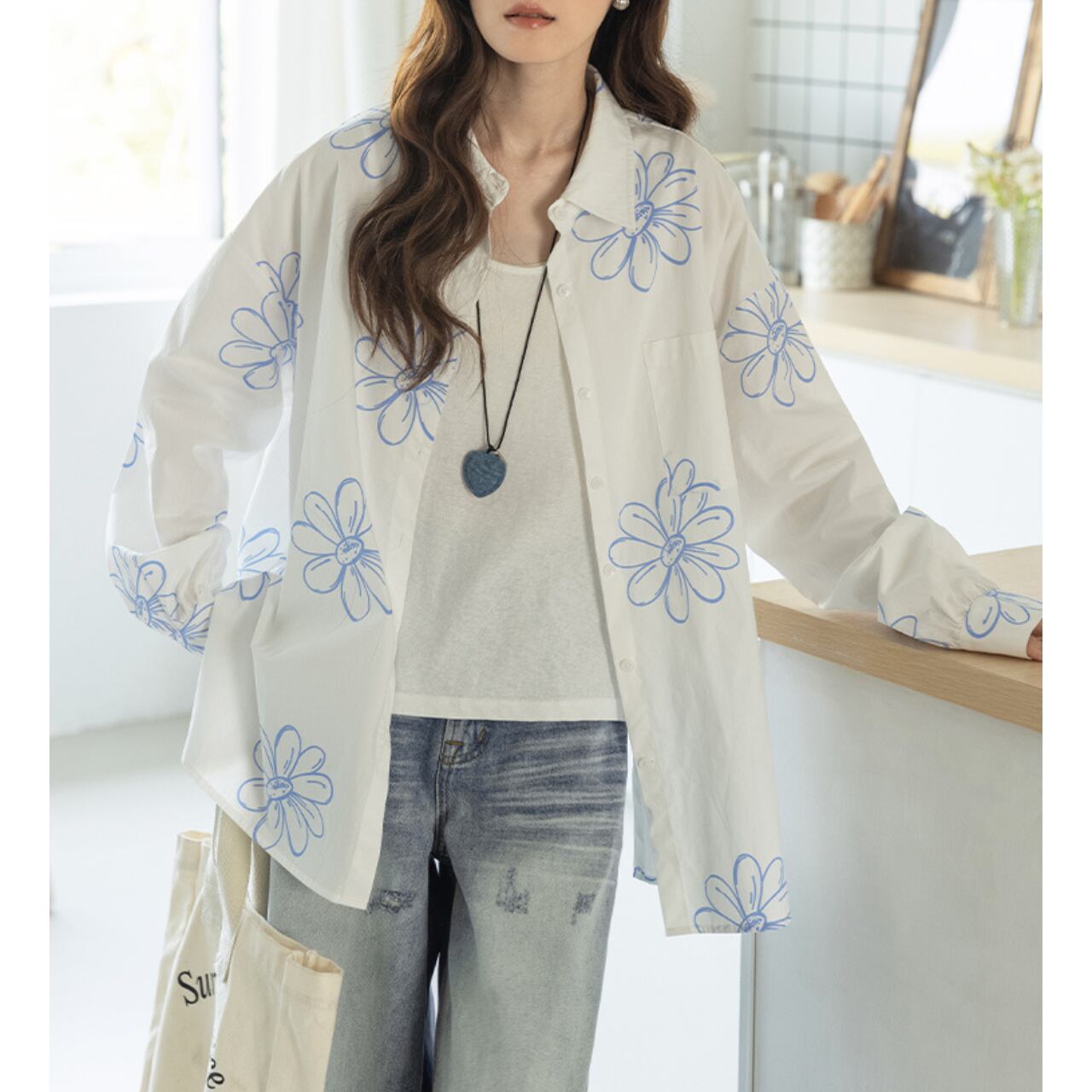 春の装いを軽やかに演出する、デージー柄のオーバーサイズシャツ。