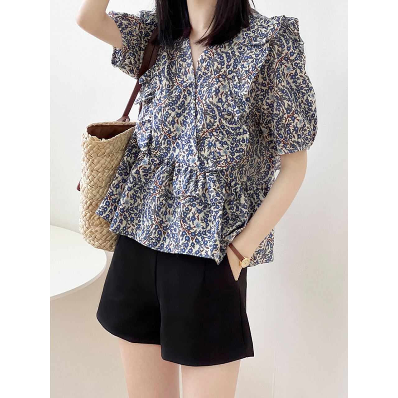 Vネックがすっきりとした印象を与え、女性らしさを引き立てます。