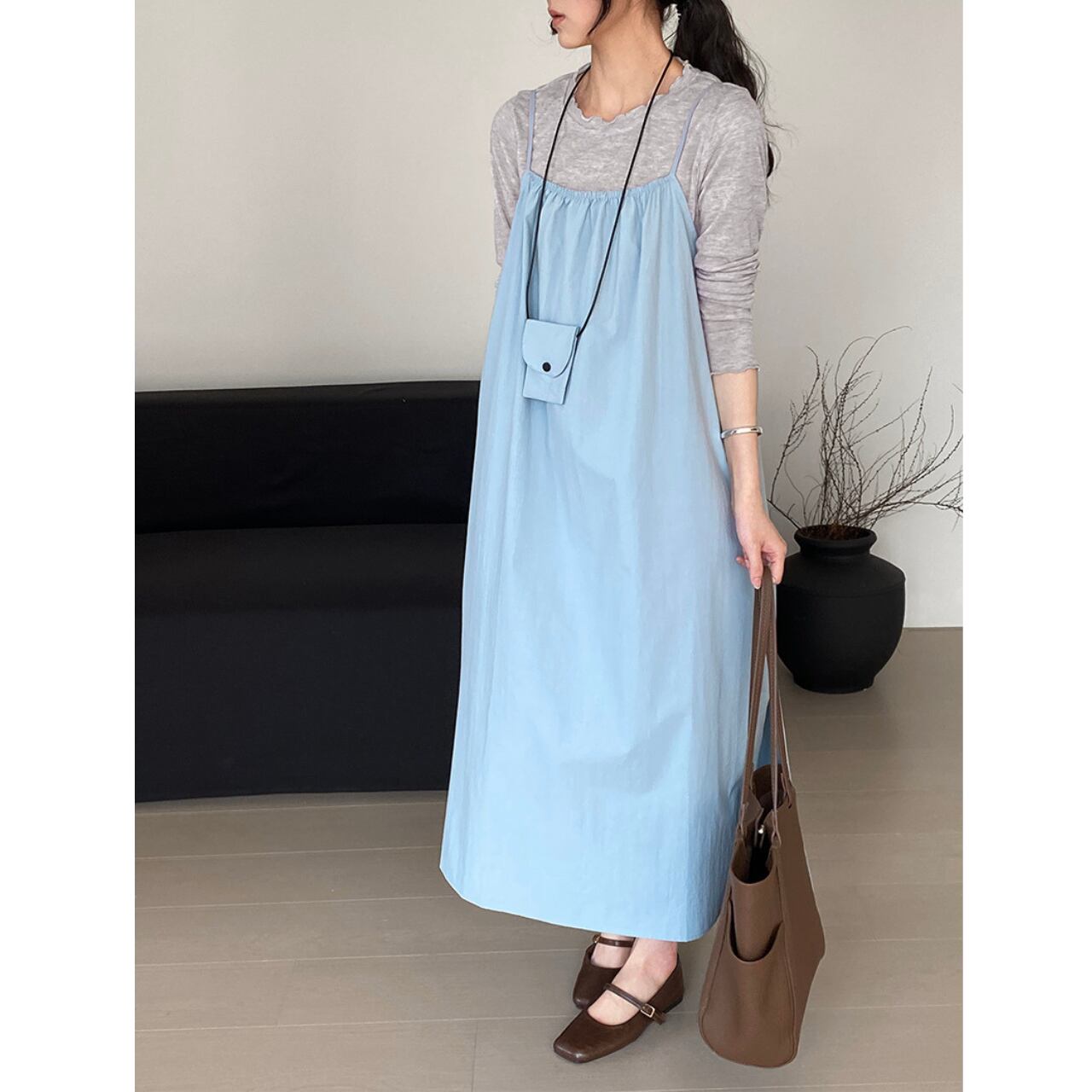 Square neck long camisole dress ◇2colors 1909