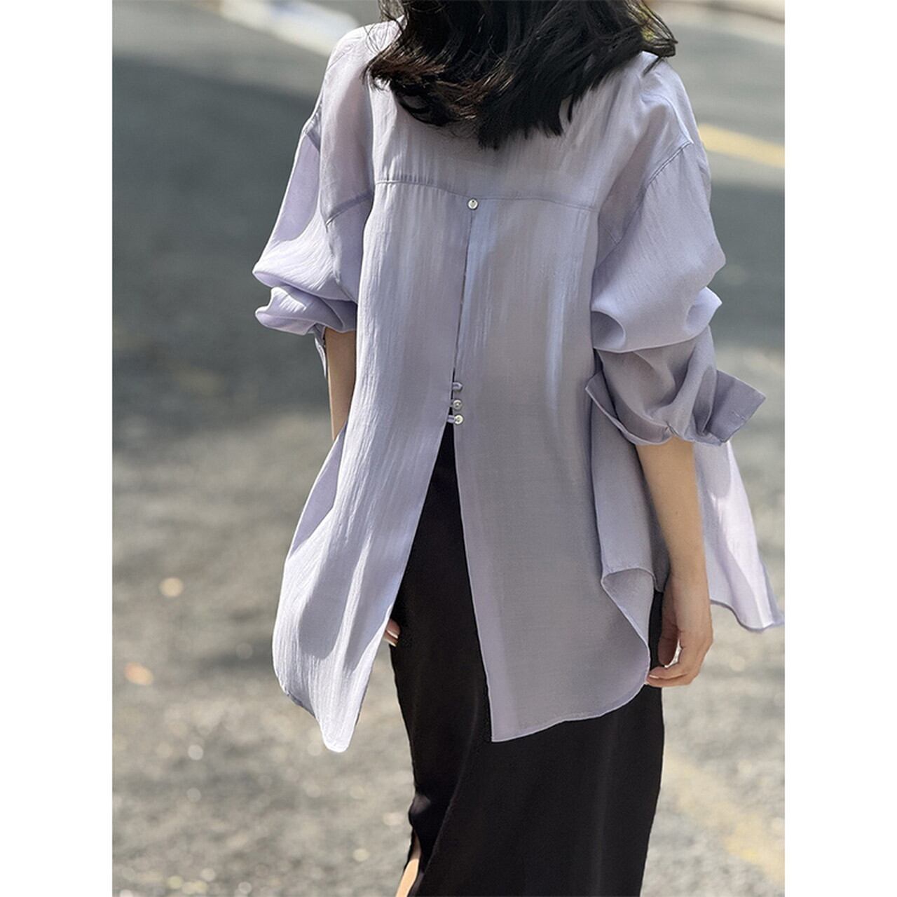 後ろボタンデザインのオーバーサイズシャツ。 ゆったりとしたシルエットで、リラックス感を演出します。 上品なデザインは、カジュアルなスタイルにも、きれいめなスタイルにも合わせやすく、着回し力抜群。 一枚でこなれた雰囲気を叶え、様々なシーンで活躍するアイテムです。 【カラー】 オフホワイト ライトベージュ パープル ブルー グレー 【サイズ】 M 肩幅:50cm 胸囲:116cm 着丈:71/74cm 袖丈:55cm 裾周り:116cm L 肩幅:51cm 胸囲:120cm 着丈:72/75cm 袖丈:56cm 裾周り:120cm ※採寸方法により1~3cmの誤差がある場合がございます 【素材】 テンセル84% 他 【お届けについて】 こちらの商品は海外店舗より直接発送となる為、 ご入金から「1〜3週間前後」で発送致します。 *---------------------------------------------* ◇注意事項 ・タイミングによっては 商品在庫切れにより 注文キャンセルとさせていただく恐れも ございますので、予めご了承くださいませ。 ・こちらは輸入品となります。 日本製とは検品基準が異なる為、新品未使用品でも ごくわずかな汚れや傷がある場合もございます。 ・商品の色味は、お手持ちのスマートフォンの 画面によって実物と若干異なる場合がございます。 ・イメージ違いやサイズ等、お客様都合による交換、 返品、キャンセルは対応出来かねます。 *---------------------------------------------* ご購入前にこちらをお読みください →https://style.official-shinon.com/about *---------------------------------------------* ◇ご利用可能お支払い方法 ・クレジットカード決済(手数料0円) ・キャリア決済(手数料別途) ・Pay ID決済(口座振替/コンビニ)