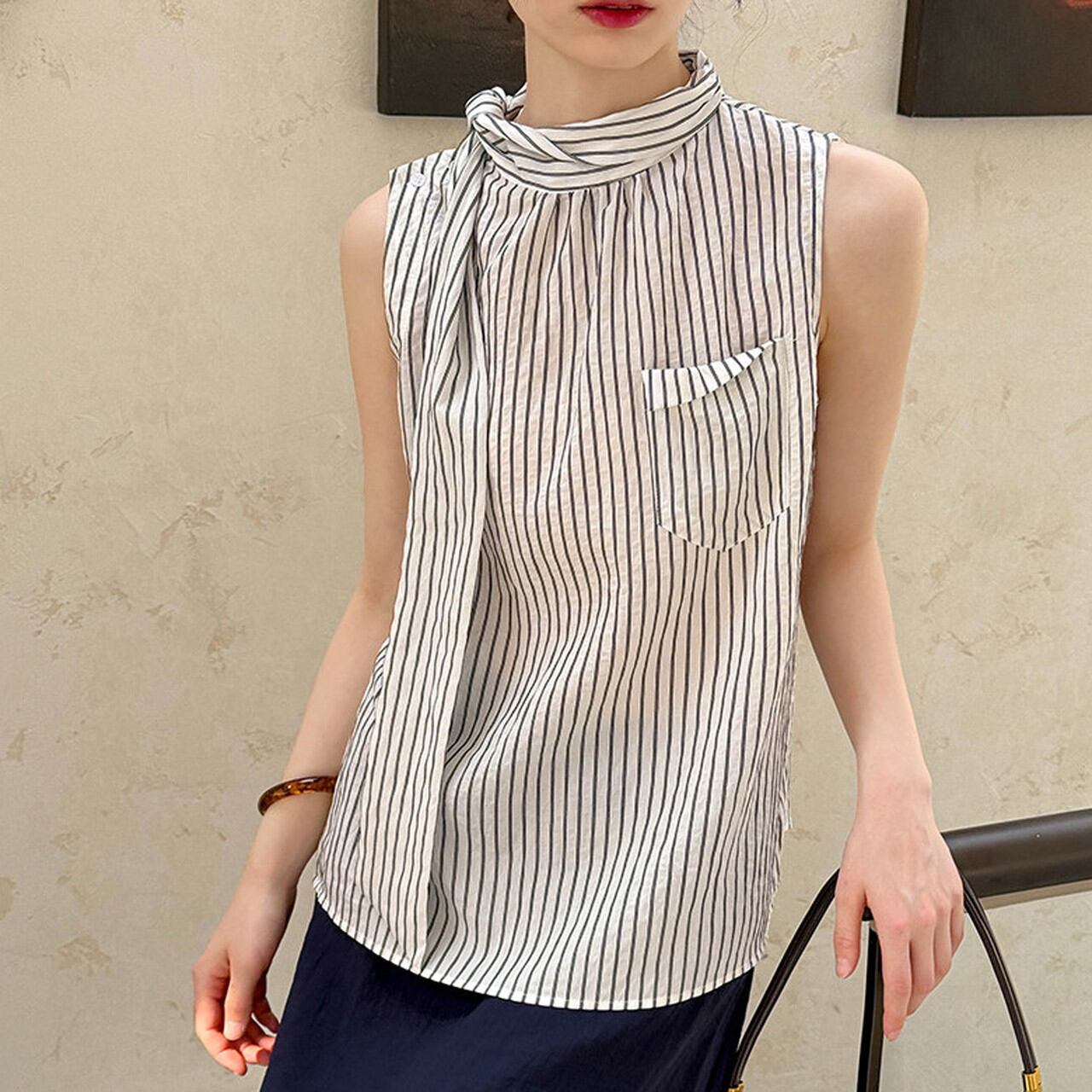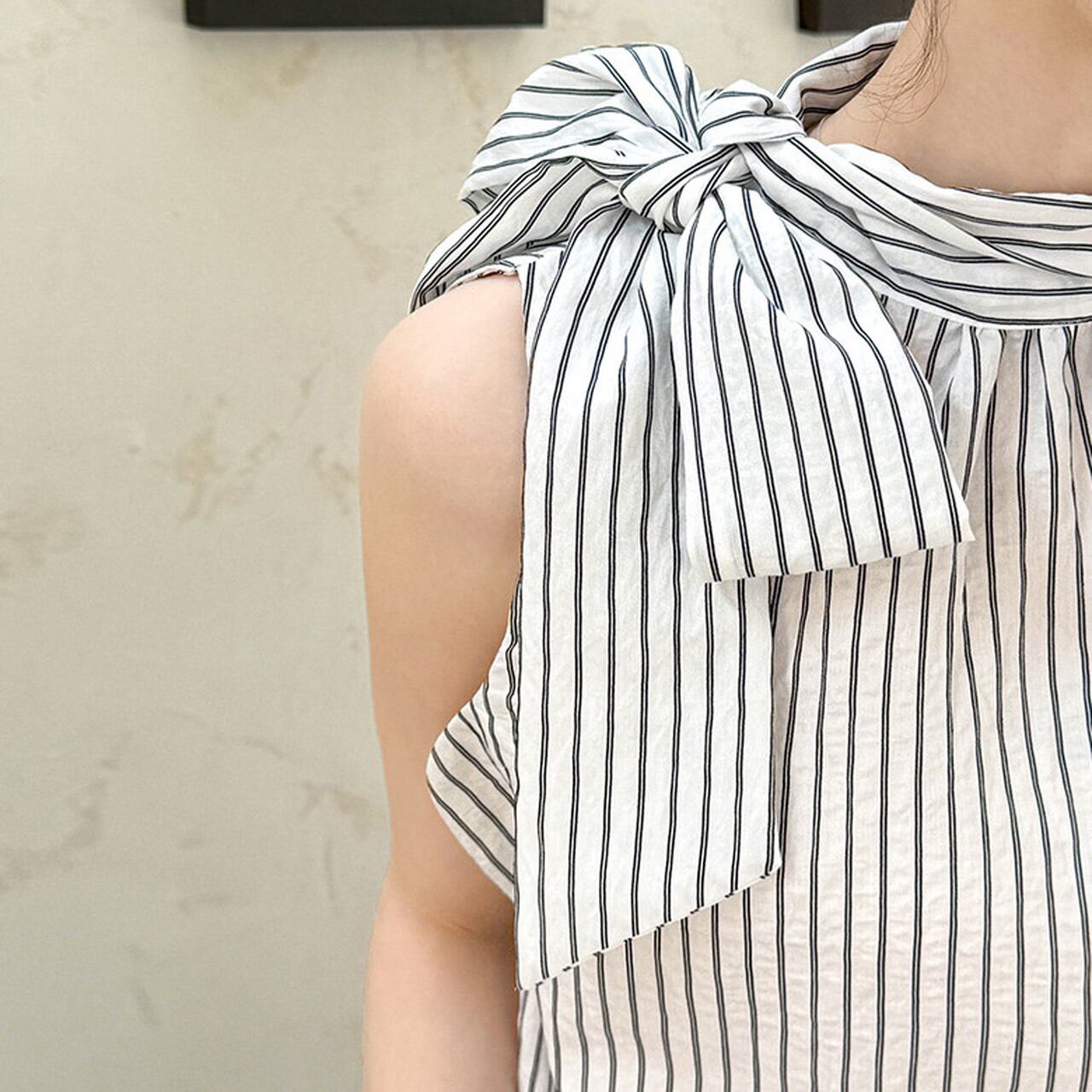Striped sleeveless bowtie blouse ◇2colors 1932