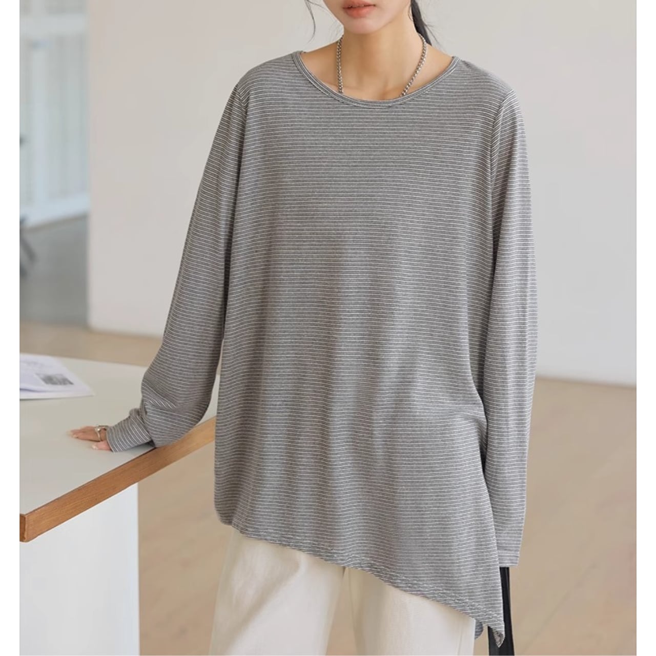上品でカジュアルなスタイルを演出するロングスリーブTシャツ。 アシンメトリーな裾デザインが、シンプルながらも洗練された印象を与えます。 【カラー】 オフホワイト ストライプ 【サイズ】 S 肩幅:37cm 胸囲:120cm 袖丈:65cm 着丈:68-71cm M 肩幅:38cm 胸囲:122cm 袖丈:66cm 着丈:69-72cm L 肩幅:39cm 胸囲:124cm 袖丈:67cm 着丈:70-73cm ※採寸方法により1~3cmの誤差がある場合がございます ※モデル 身長163cm 【素材】 ポリエステル55% ビスコース45% 【お届けについて】 こちらの商品は海外店舗より直接発送となる為、 ご入金から「1〜3週間前後」で発送致します。 *---------------------------------------------* ◇注意事項 ・タイミングによっては 商品在庫切れにより 注文キャンセルとさせていただく恐れも ございますので、予めご了承くださいませ。 ・こちらは輸入品となります。 日本製とは検品基準が異なる為、新品未使用品でも ごくわずかな汚れや傷がある場合もございます。 ・商品の色味は、お手持ちのスマートフォンの 画面によって実物と若干異なる場合がございます。 ・イメージ違いやサイズ等、お客様都合による交換、 返品、キャンセルは対応出来かねます。 *---------------------------------------------* ご購入前にこちらをお読みください →https://style.official-shinon.com/about *---------------------------------------------* ◇ご利用可能お支払い方法 ・クレジットカード決済(手数料0円) ・キャリア決済(手数料別途) ・Pay ID決済(口座振替/コンビニ)