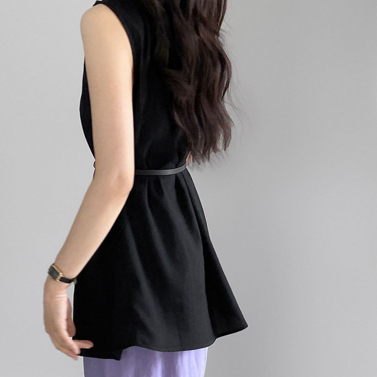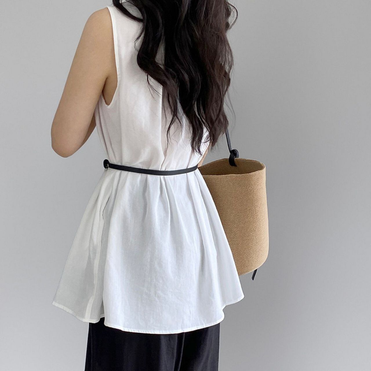 上品でフェミニンなスタイルを叶えるノースリーブブラウス。