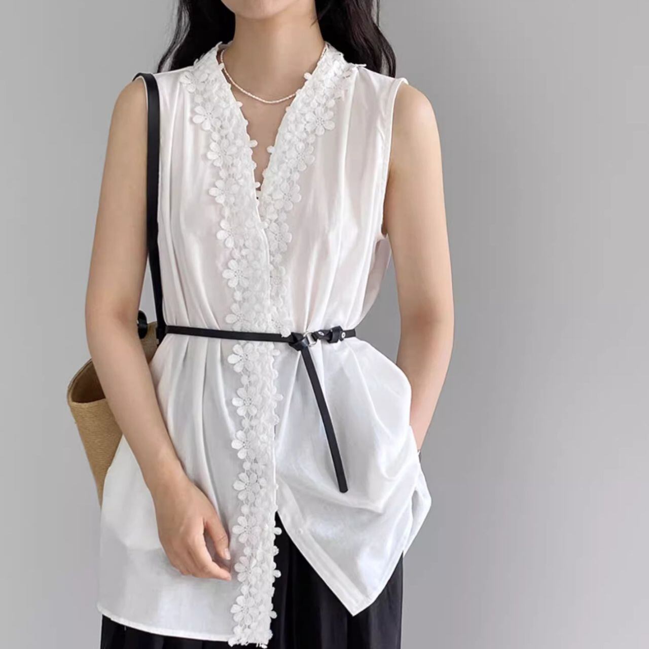 Flower lace decorative sleeveless A-line blouse ◇2colors 2089