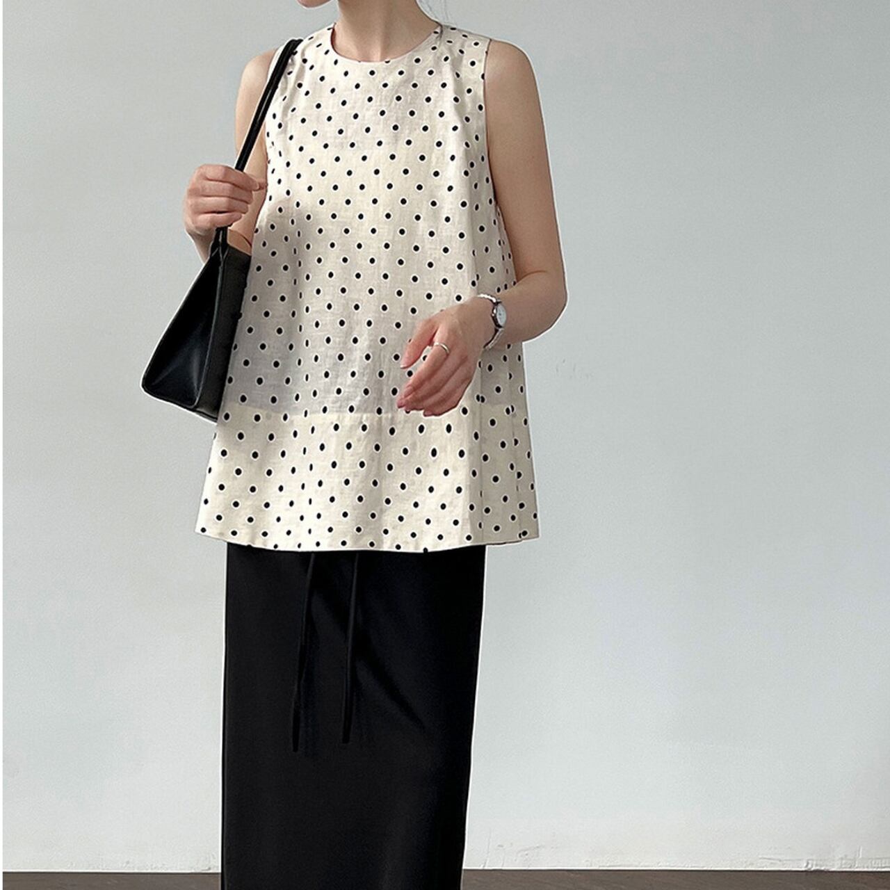 Polka dot A-line silhouette sleeveless top ◇ 2099