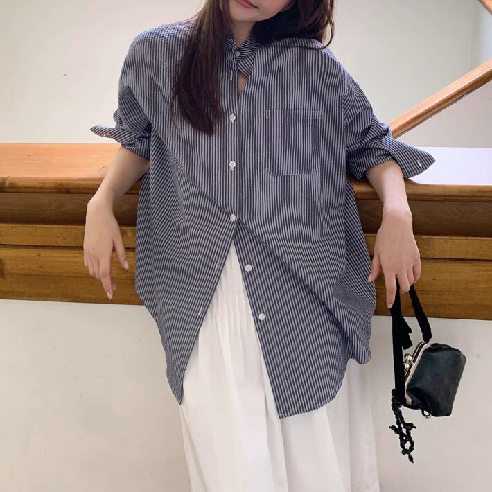 スタンドカラーが特徴のルーズストライプロングシャツ。 羽織としてはもちろん、ボトムスにインしてトップスとして着てもかわいい◎ 【カラー】 アプリコット ブルー 【サイズ】 XS 肩幅:58cm 胸囲:127cm 着丈:75.5cm 袖丈:50.5cm 袖口:21cm S 肩幅:59cm 胸囲:131cm 着丈:79.5cm 袖丈:52.5cm 袖口:22cm M 肩幅:60cm 胸囲:135cm 着丈:81cm 袖丈:53.5cm 袖口:23cm ※採寸方法により1〜3cmの誤差がある場合がございます ※モデル 身長166cm Sサイズ着用 【素材】 綿100% 【お届けについて】 こちらの商品は海外店舗より直接発送となる為、 ご入金から「1〜3週間前後」で発送致します。 *---------------------------------------------* ◇注意事項 ・タイミングによっては 商品在庫切れにより 注文キャンセルとさせていただく恐れもございますので、 予めご了承くださいませ。 ・こちらは輸入品となります。 日本製とは検品基準が異なる為、新品未使用品でも ごくわずかな汚れや傷がある場合もございます。 ・商品の色味は、お手持ちのスマートフォンの 画面によって実物と若干異なる場合がございます。 ・イメージ違いやサイズ等、お客様都合による交換、 返品、キャンセルは対応出来かねます。 *---------------------------------------------* ご購入前にこちらをお読みください →https://style.official-shinon.com/about *---------------------------------------------* ◇ご利用可能お支払い方法 ・クレジットカード決済(手数料0円) ・キャリア決済(手数料別途) ・Pay ID決済(口座振替/コンビニ)