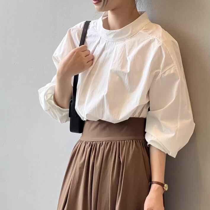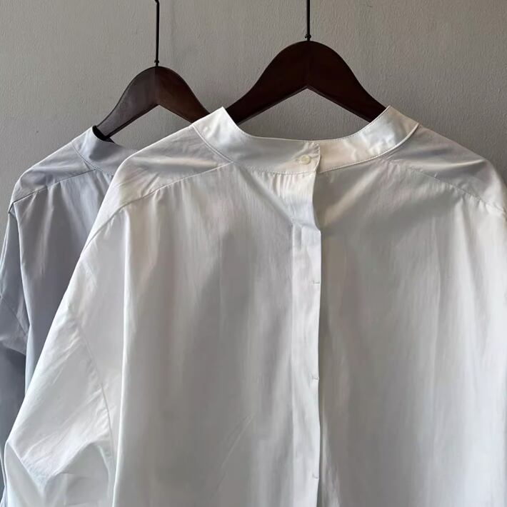 バックスタイルが特徴的なノーカラーデザインシャツ。 上品な中にかわいさを兼ね備えた、この秋おすすめのアイテムです◎ 【カラー】 ホワイト ブルー 【サイズ】 M 胸囲:120cm 着丈:70cm 袖丈:72cm L 胸囲:124cm 着丈:71cm 袖丈:73cm ※採寸方法により1〜3cmの誤差がある場合がございます 【素材】 綿99% 【お届けについて】 こちらの商品は海外店舗より直接発送となる為、 ご入金から「1〜3週間前後」で発送致します。 *---------------------------------------------* ◇注意事項 ・タイミングによっては 商品在庫切れにより 注文キャンセルとさせていただく恐れもございますので、 予めご了承くださいませ。 ・こちらは輸入品となります。 日本製とは検品基準が異なる為、新品未使用品でも ごくわずかな汚れや傷がある場合もございます。 ・商品の色味は、お手持ちのスマートフォンの 画面によって実物と若干異なる場合がございます。 ・イメージ違いやサイズ等、お客様都合による交換、 返品、キャンセルは対応出来かねます。 *---------------------------------------------* ご購入前にこちらをお読みください →https://style.official-shinon.com/about *---------------------------------------------* ◇ご利用可能お支払い方法 ・クレジットカード決済(手数料0円) ・キャリア決済(手数料別途) ・Pay ID決済(口座振替/コンビニ)