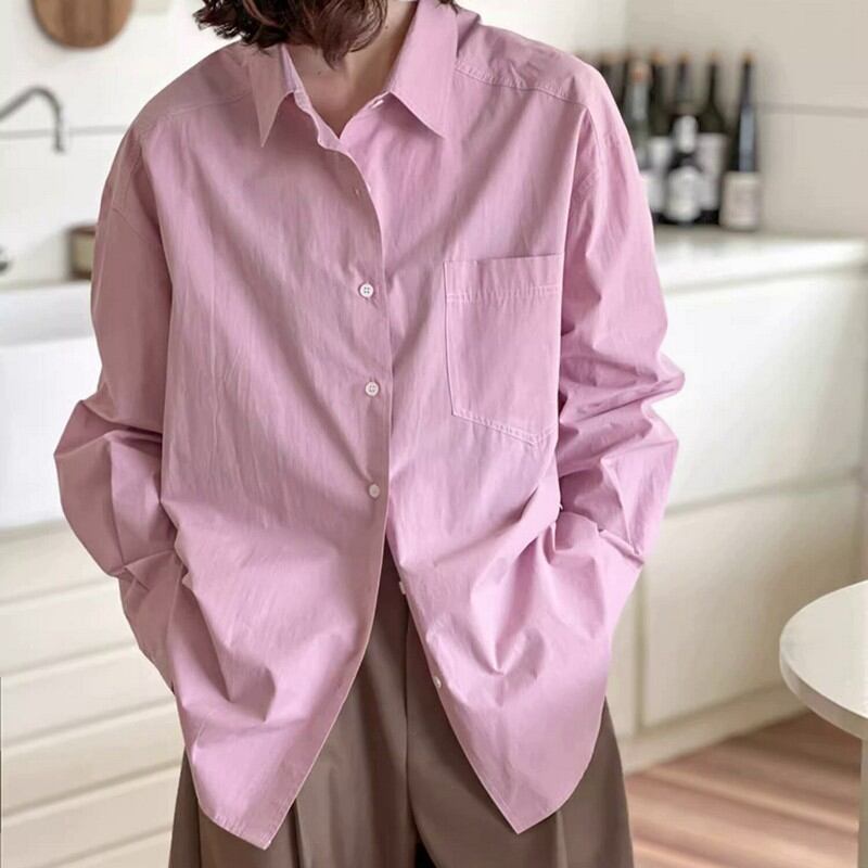 上品なピンクカラーが特徴のエレガントなシャツです。シンプルながら洗練されたデザインで、大人の女性のコーディネートに華やかさをプラスします。ンツやスカートとも相性抜群です。この一枚で、洗練された大人の着こなしをお楽しみください。